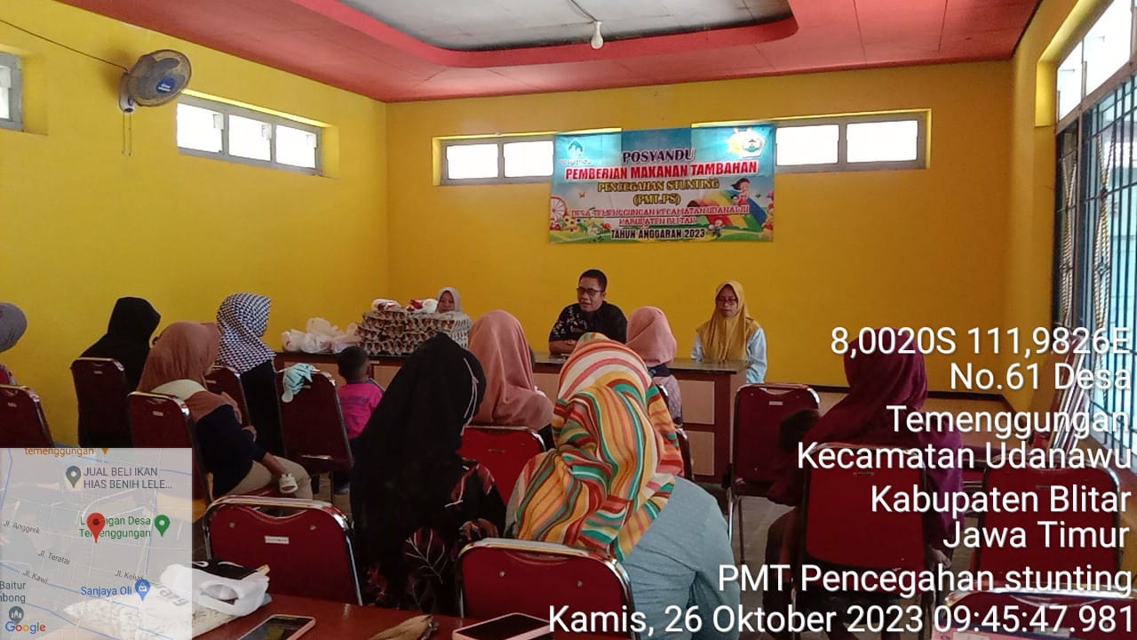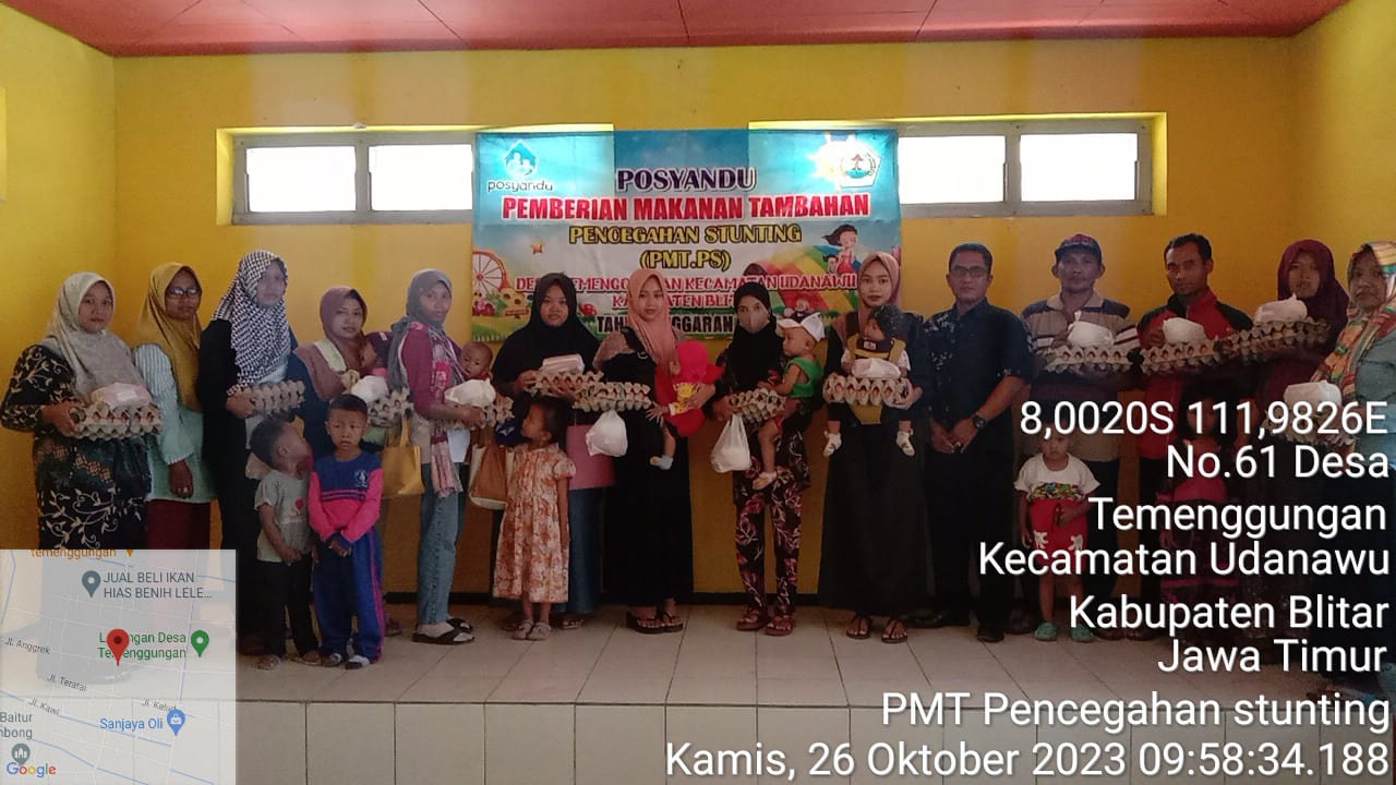 Pemerintah Desa Temenggungan bersama Kader Pembangunan Manusia ( KPM ) dan Kader Posyandu Balita Desa Temenggungan, menyalurkan bantuan paket Pemberian Makanan Tambahan ( PMT ) Pencegahan Stunting kepada 12 balita di Desa Temenggungan berupa Telur Ayam, Buah-buahan, dan Roti Regal. 12 Balita tersebut hasil dari penghitungan dibawah standard Balita Sehat dari 3 Posyandu yg ada di Desa Temenggungan.