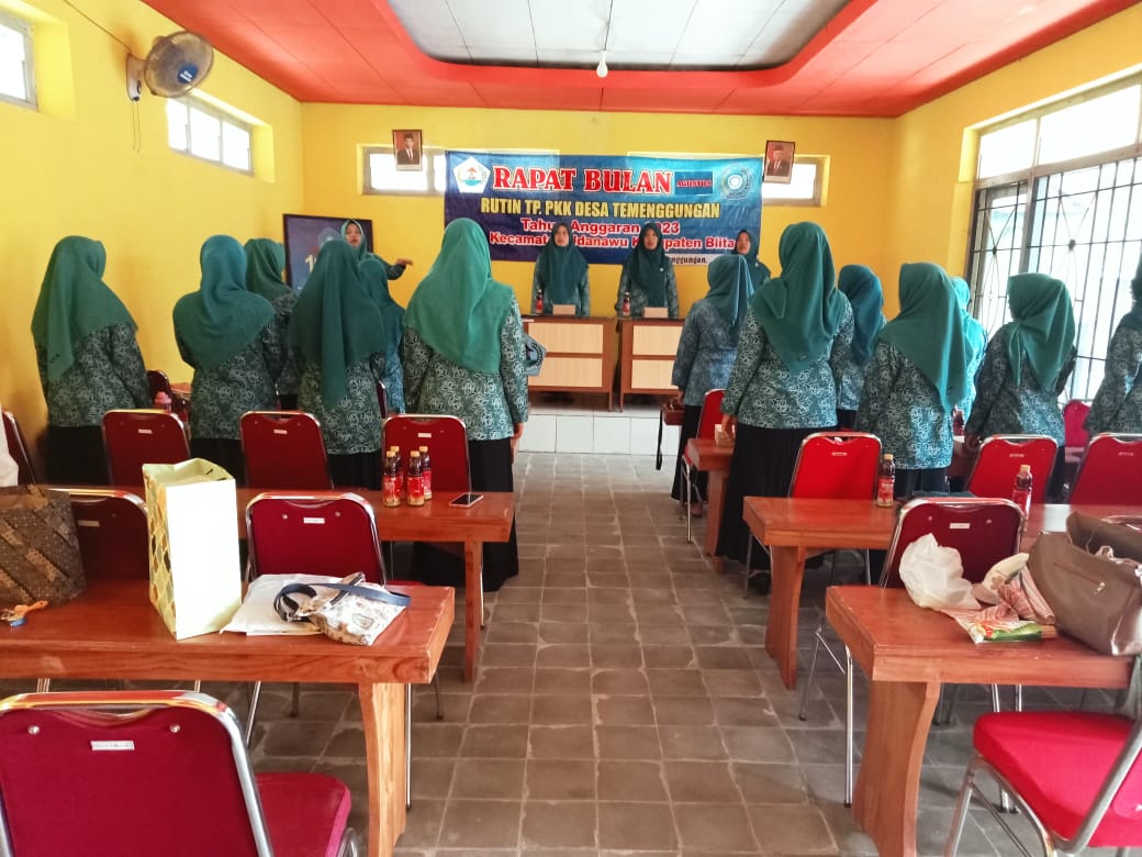 Kegiatan rutin pertemuan TP-PKK Desa Temenggungan dilaksanakan di Ruang Rapat Kantor Desa Temenggungan. Kegiatan tersebut merupakan kegiatan rutin yang di ikuti oleh kader kader PKK Desa Temenggungan. Dalam pertemuan tersebut juga dilaksanakan berbagai kegiatan seperti senam, dan membahas tentang bagaimana menggerakan kelompok kelompok PKK agar dapat mewujudkan kegiatan-kegiatan yang telah disusun dan disepakati. Diharapkan dengan diadakannya pertemuan rutin ini, PKK mampu untuk melaksanakan dan mewujudkan kegiatan kegiatan dengan baik dan maksimal, sesuai dengan fungsi PKK memberdayakan keluarga untuk meningkatkan kesejahteraan menuju terwujudnya keluarga yang beriman dan bertaqwa kepada tuhan yang maha esa, berakhlak mulia dan berbudi luhur, sehat sejahtera, maju dan mandiri, kesetaraan dan keadilan gender serta kesadaran hukum dan lingkungan.