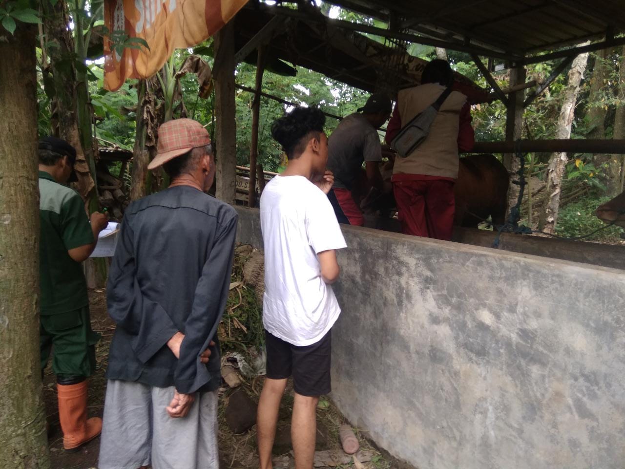 Pemdes Temenggungan, Senin 16 Januari 2023 – Hari pertama pelaksanaan vaksinasi PMK Hewan ternak sapi/kambing berjalan lancar. Petugas dari PUSKESWAN drh. Titus dkk bersama dengan Kamituwo dan Ketua RT mendatangi ke kandang-kandang peternak dengan menyisir ke wilayah RT. Ikut serta dalam kegiatan tersebut Babinsa dan Bhabinkamtibmas Desa Temenggungan.